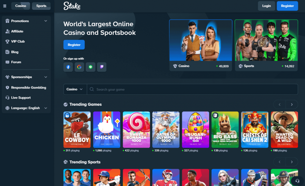 Stake se pyšní rozsáhlou knihovnou více než 3 000 her od předních poskytovatelů, jako jsou Pragmatic Play, Hacksaw Gaming, Play’n GO a Evolution Gaming. Nabízí široký výběr automatů, stolních her, živých kasinových her a jackpotových titulů. Mezi oblíbené hry patří Gates of Olympus, Sweet Bonanza a 2025 Hit Slot.